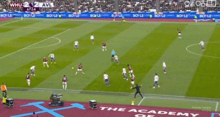 第24分钟,波茨助攻,鲍恩门前点射破门,西汉姆联2-1维拉