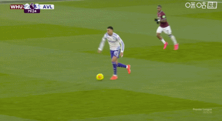 第50分钟,蒂勒曼斯传中,罗杰斯停球射门一气呵成,维拉2-2西汉姆联