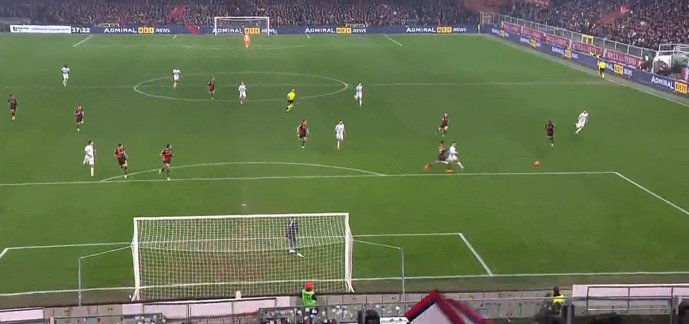 劳塔罗此战的进球,在接球前,他先用合理冲撞,扛开了贴身干扰的后卫马坎达利,占住身位的同时,还利用扛开对手的反作用力实现迅速变向,随后用另一次冲撞挤开了回防的另一名球员,得以实现攻门。